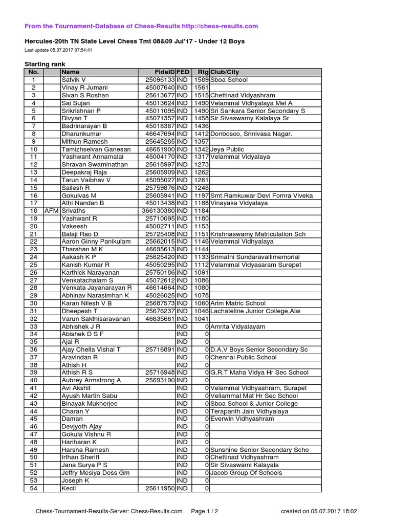 Chess Info Chess Results All India Resha Open Fide Rating At Nasik 2017 Jul 18 2017 Jul 23 2017