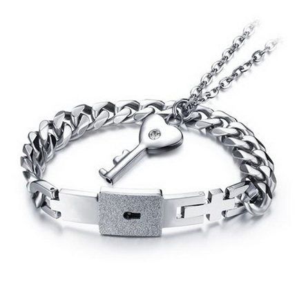Compre Concentrico Bloqueio Casal Pulseira Colar De Amor Chave Titanium Aco Pingente De Colar Pulseira Conjunto De Diamantes Para Homens Casais De Angel Jewelry 30 54 Pt Dhgate Com