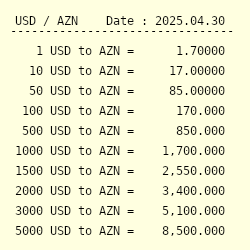 How Much Is 100 Dollars Usd To Azn According To The Foreign Exchange Rate For Today
