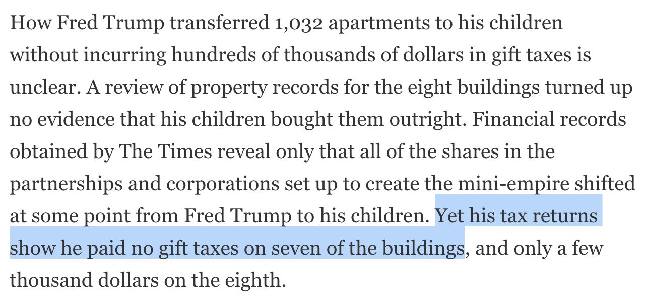 Catherine Rampell On Twitter If Fred Trump Never Filed A Gift Tax Return For Some Gifts As It Appears He Didn T For Some Transfers To His Kids That Suggests The 3 Year Clock