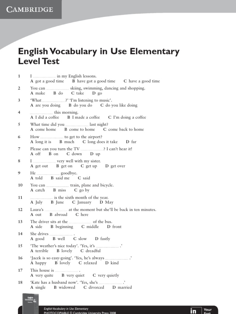 Test Your English Vocabulary In Use Elementary By Michael Mccarthy