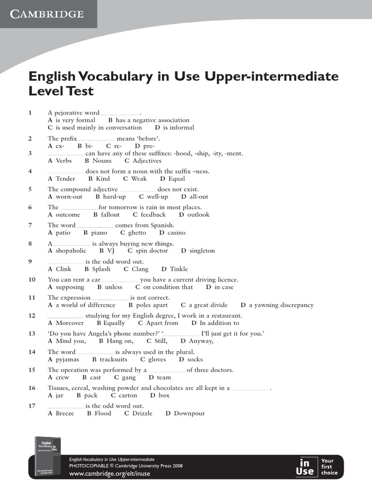 English Vocabulary In Use Upper Intermediate3 Level Test Pdf