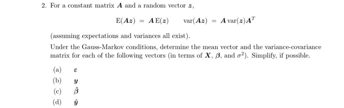Solved 2 For A Constant Matrix A And A Random Vector Z E Chegg Com
