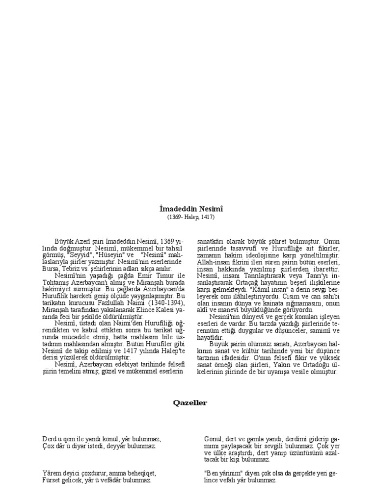 Imadeddin Nesimi Kimdir Nerelidir Imadeddin Nesimi Siirleri