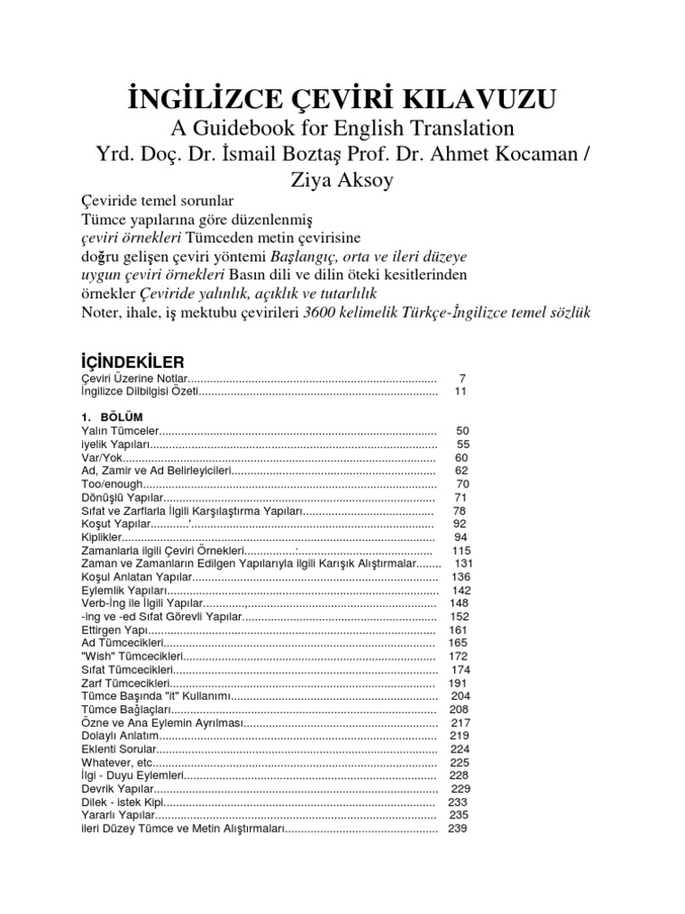 A Guidebook For English Translation Ingilizce Ceviri Kilavuzu Cevap